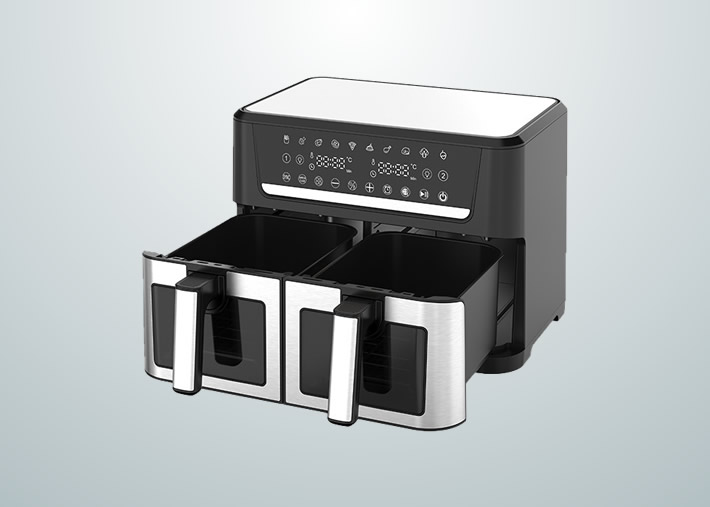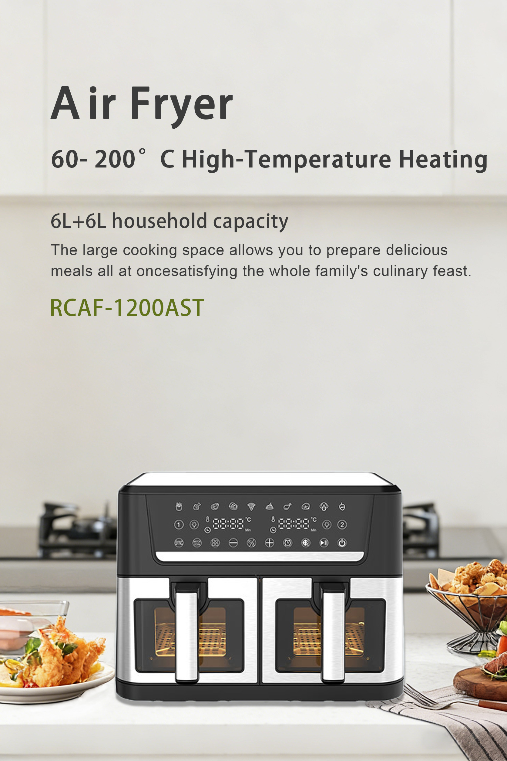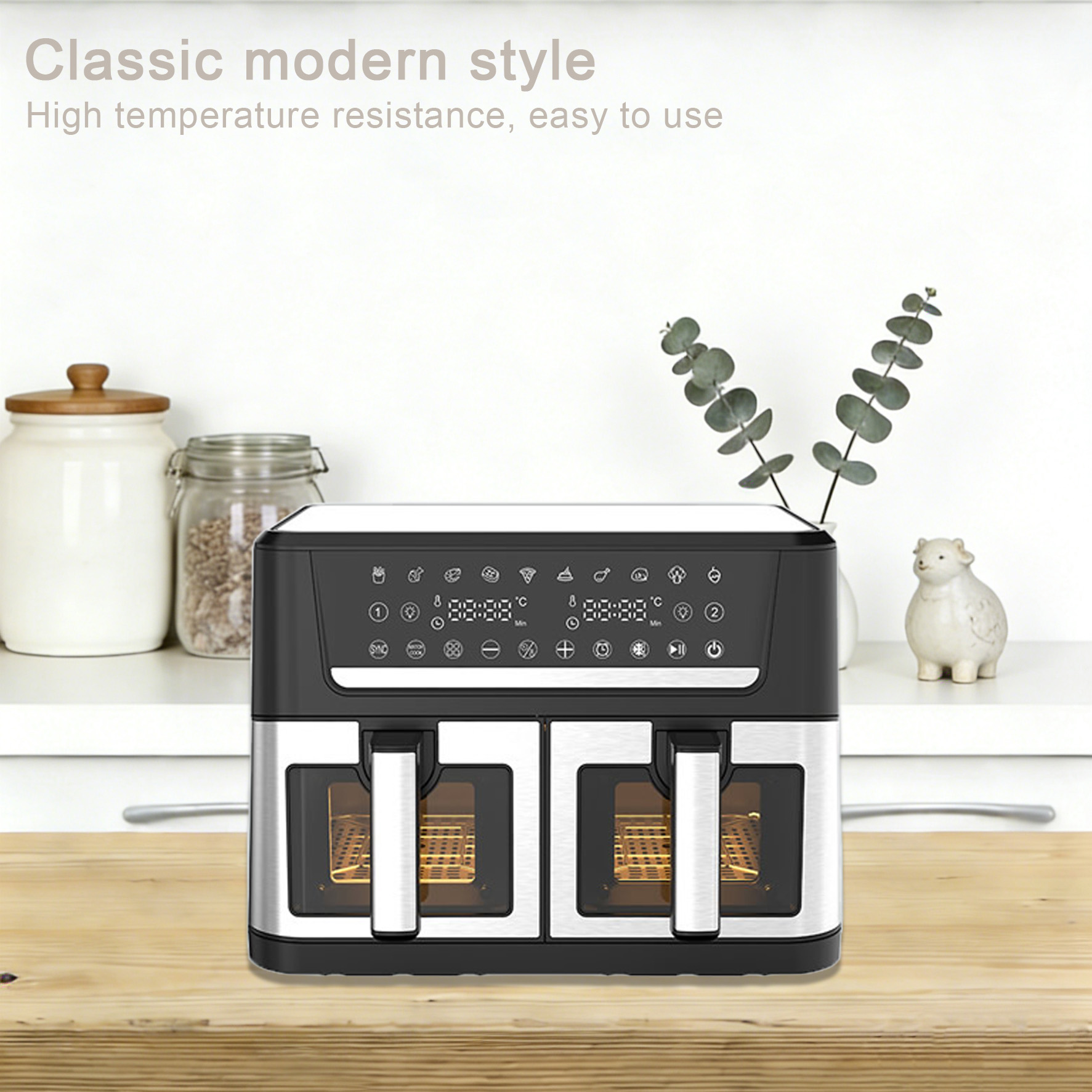 Rated Voltage:100-127V/220-240V Capacity:6L+6L Working Time:60Mins Power:1700W Temperature Control:60℃-200℃ Non-Stick Material:PTFE Shape:Square Controlling Mode:Digital Control Heating Method:360 Heated Air Circulation